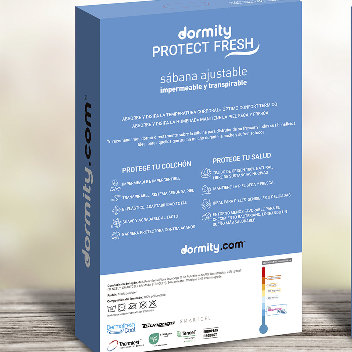 El protector tencel Dormity Fresh con tejido impermeable y transpirable diseñado para proteger y refrescar el mejor descanso.
